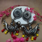These handmade oxidized earrings feature a stunning combination of red and yellow beads, showcasing intricate design and exceptional craftsmanship. The bold beads add a vibrant pop of color, while the oxidized metal brings a vintage charm, creating a timeless and sophisticated look. Perfect for any occasion, these earrings effortlessly elevate both casual and formal outfits, offering versatility and elegance. The unique blend of artistic flair and subtle sophistication makes these earrings a standout accessory, ideal for those who appreciate handmade artistry and want to add a touch of individuality to their style.