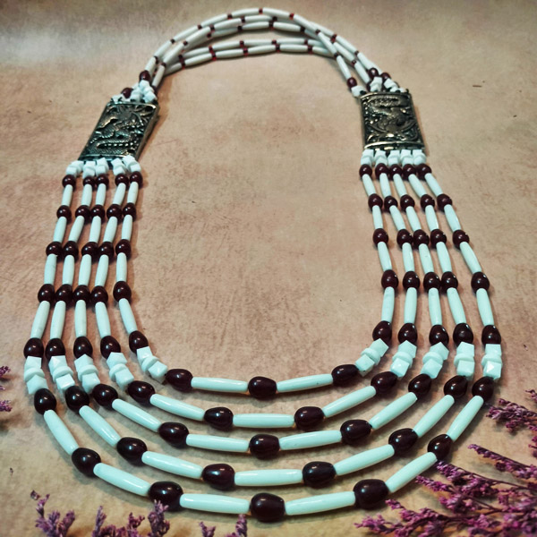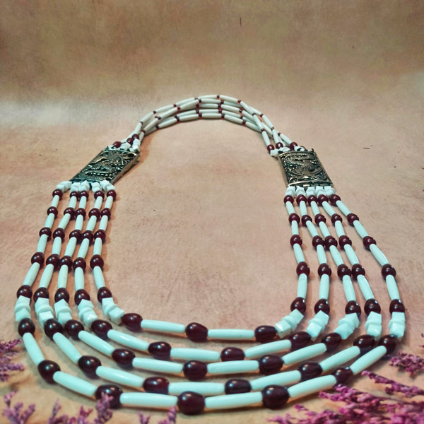 Turn heads with this charming beaded oxidised layered necklace set — a perfect blend of tribal elegance and modern versatility. Featuring a rich maroon and white color combination, this handcrafted piece adds depth and character to your look. Whether paired with a saree or a sleek dress, it brings a bold yet balanced statement to any outfit.