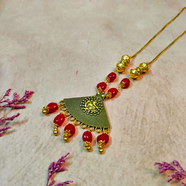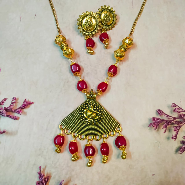 Celebrate tradition with elegance! This Ganesha necklace features a beautiful blend of red beads and golden oxidised accents, giving it a timeless charm. The minimal yet striking design makes it perfect for festive occasions or special gatherings.