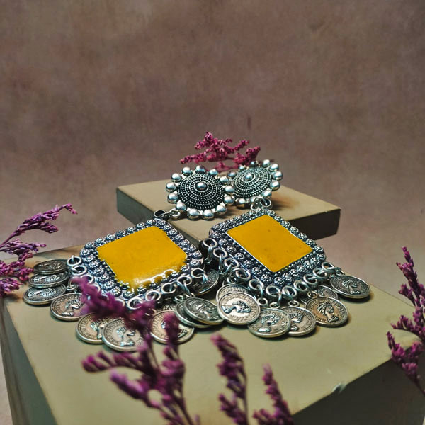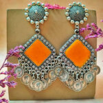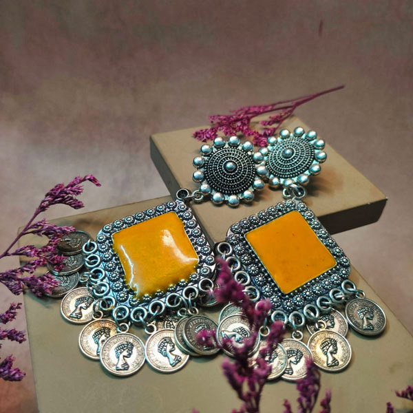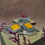 A harmonious blend of tradition and modern flair, these yellow square earrings make a bold statement with their clean geometric form and intricate detailing. Handcrafted with care and precision, each pair reflects the artist’s dedication to subtle elegance and fine craftsmanship. The delicate design catches the eye without overwhelming, making it a perfect accessory for both traditional attire and contemporary outfits. Whether you’re dressing up for a festive occasion or adding a touch of sophistication to your daily look, these earrings are your timeless go-to.