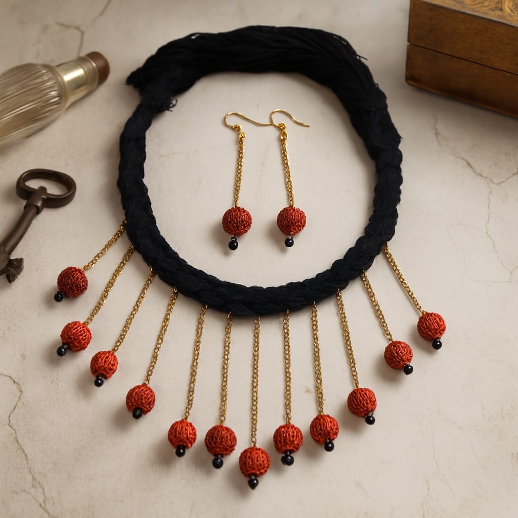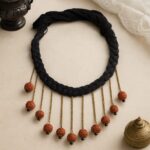 This Rudraksha choker set with a golden chain and black cotton tassel is a perfect blend of simplicity and elegance. Its minimalistic design makes it versatile enough to pair with any outfit—whether it’s a saree, kurti, or even a western dress. Lightweight and graceful, this piece enhances your style effortlessly, making it suitable for daily wear or special occasions. A timeless accessory, it adds a touch of tradition while keeping the look modern. Don’t miss out—grab yours today!