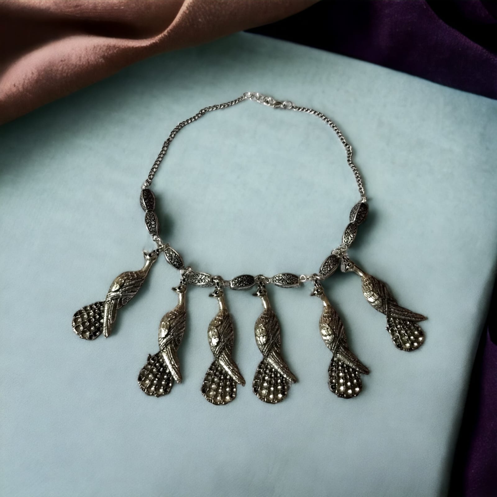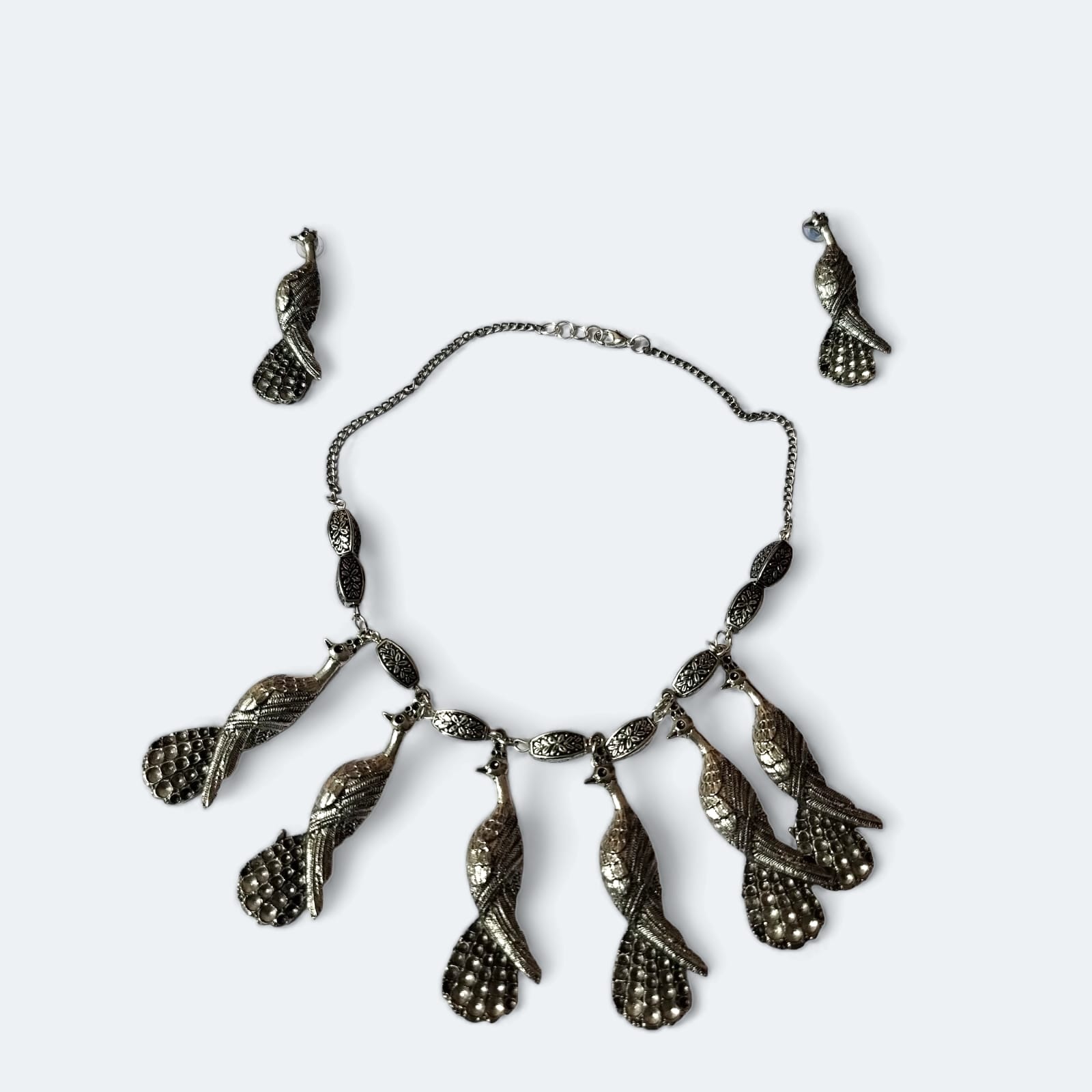 Inspired by the story telling peacocks, this set will be a valuable addition to your jewel box.