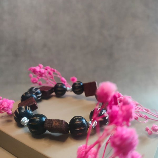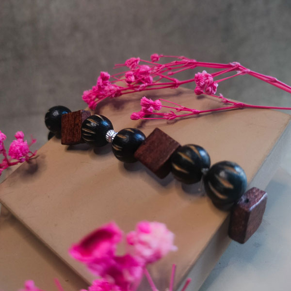 The wooden beaded bracelet is crafted with natural wooden beads in a striking combination of black and brown. Its simplicity exudes elegance, making it a timeless accessory for any occasion.